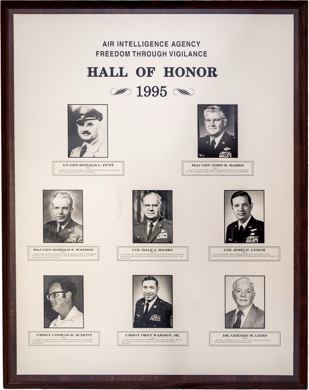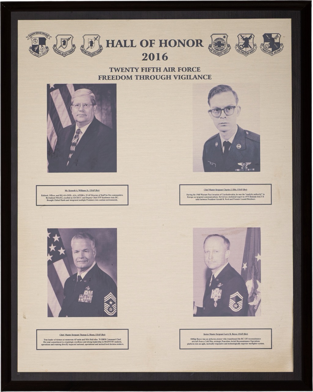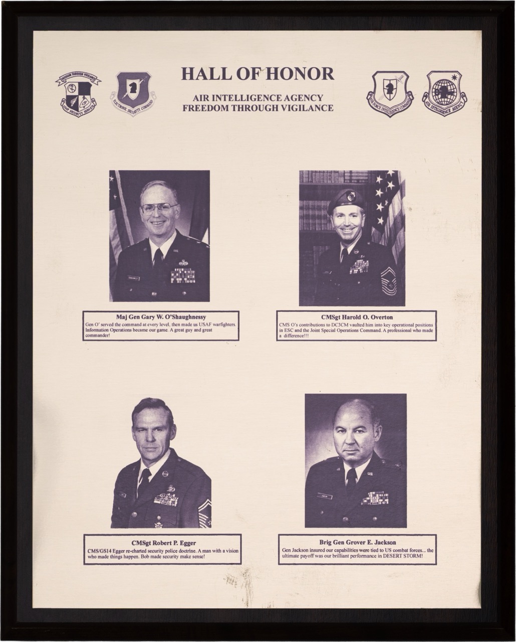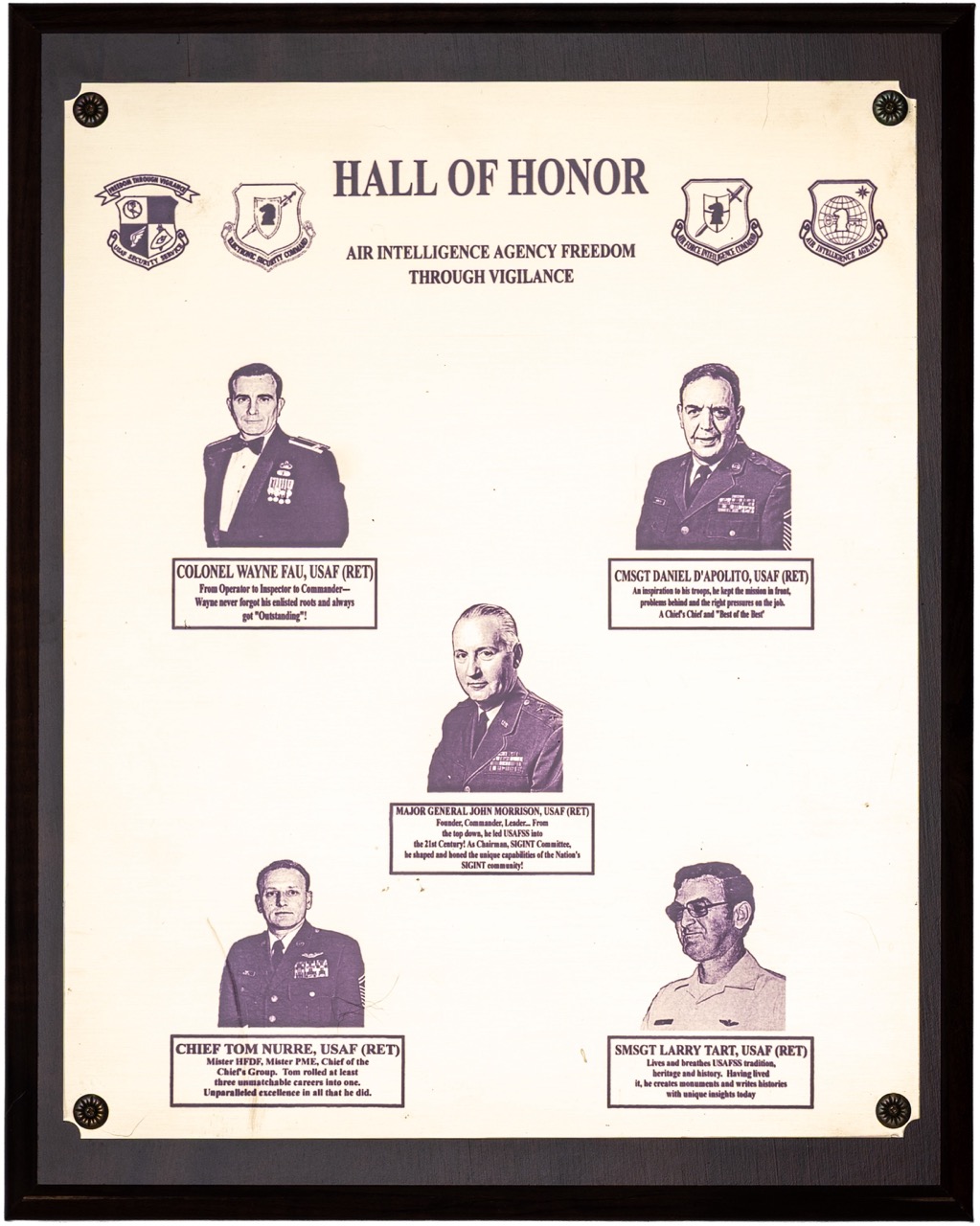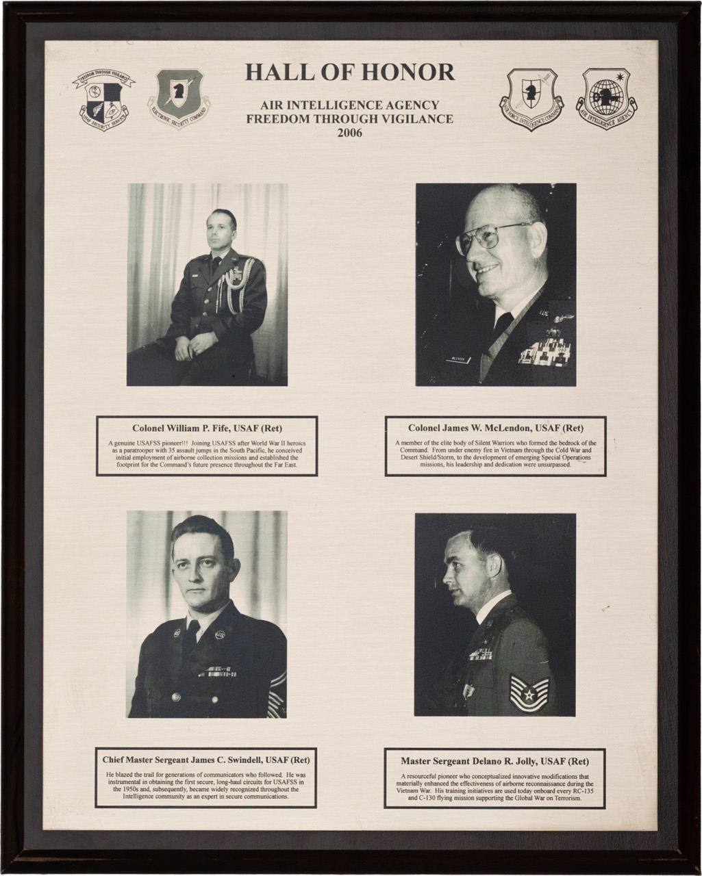 The Hall of Honor was created in 1983. It honors individuals who served with great distinction and contributed immeasurably to successful mission accomplishment. The Hall of Honor preserves the legacy of those who have gone before, highlights their deeds, and honors their contributions to the nation.