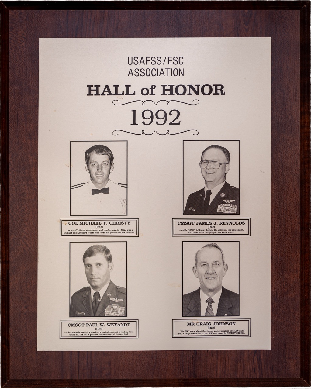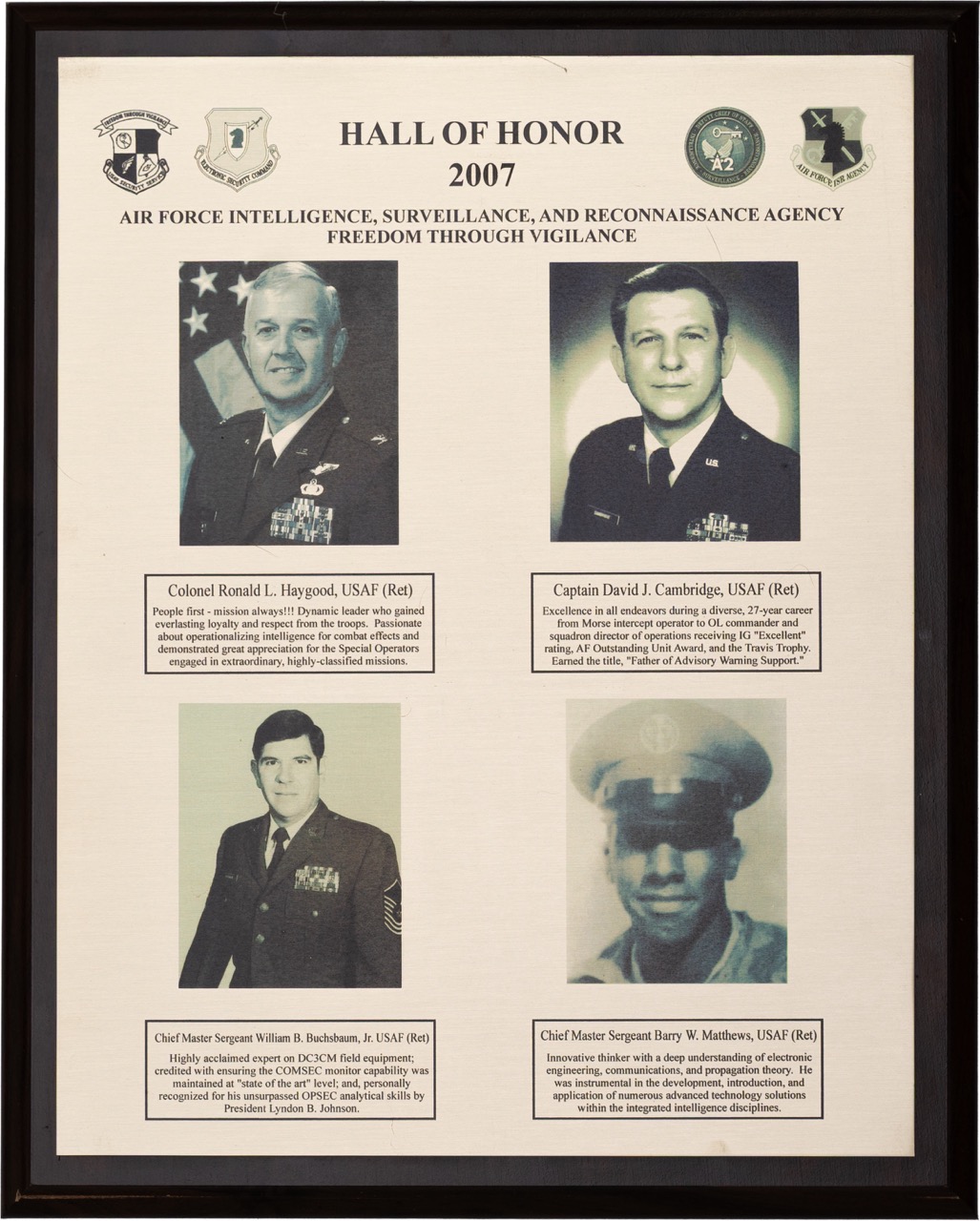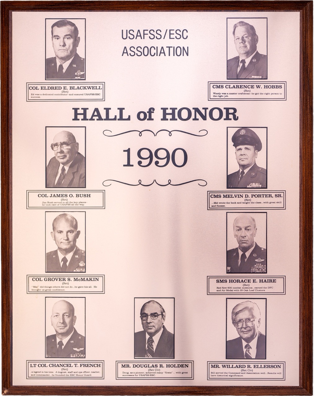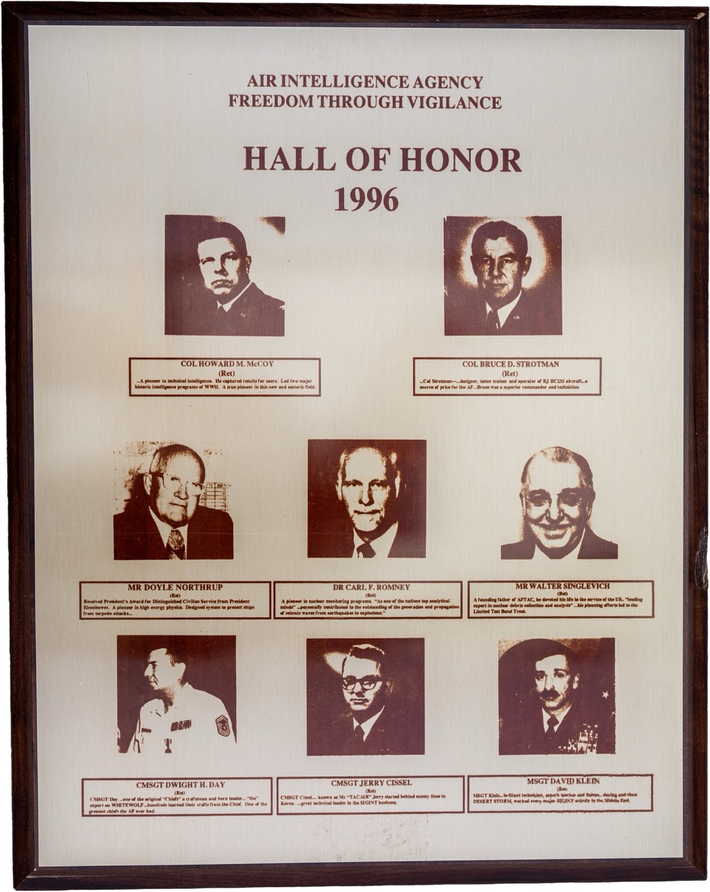 The Hall of Honor was created in 1983. It honors individuals who served with great distinction and contributed immeasurably to successful mission accomplishment. The Hall of Honor preserves the legacy of those who have gone before, highlights their deeds, and honors their contributions to the nation.