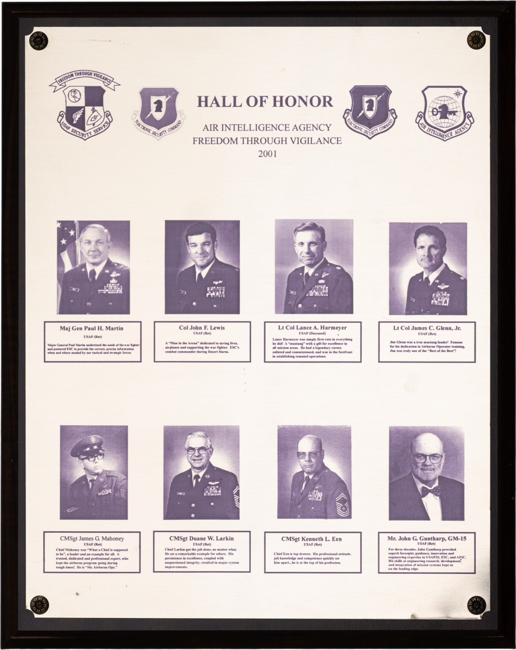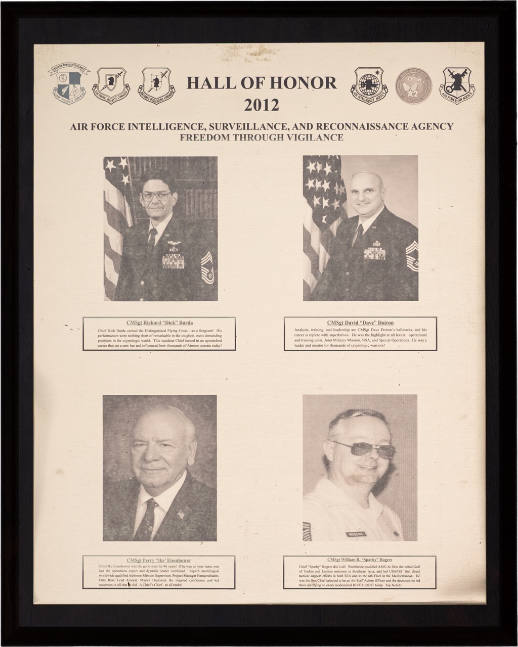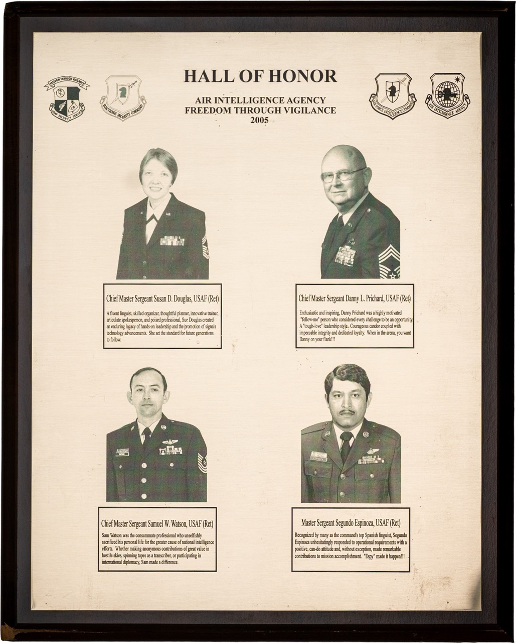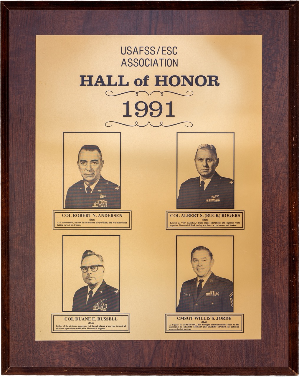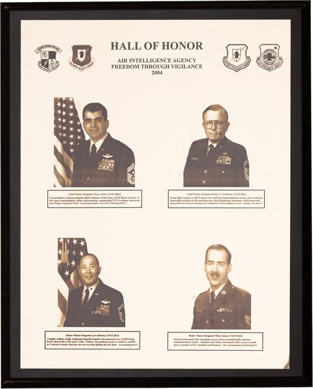 The Hall of Honor was created in 1983. It honors individuals who served with great distinction and contributed immeasurably to successful mission accomplishment. The Hall of Honor preserves the legacy of those who have gone before, highlights their deeds, and honors their contributions to the nation.