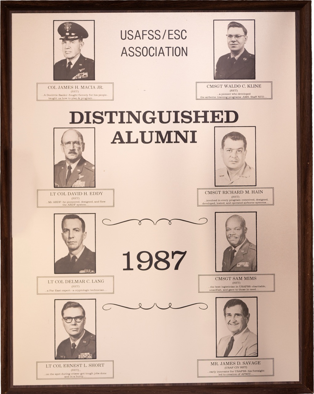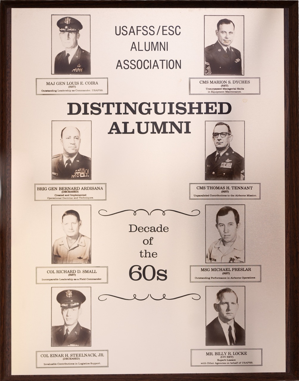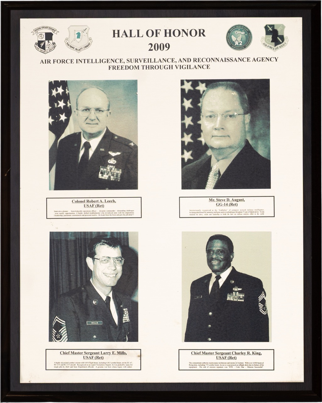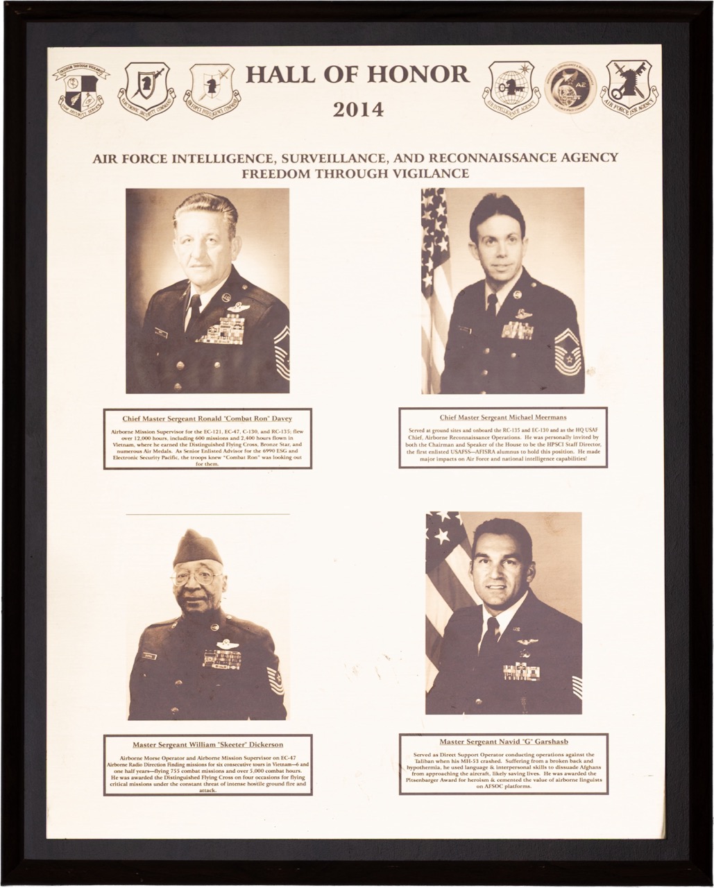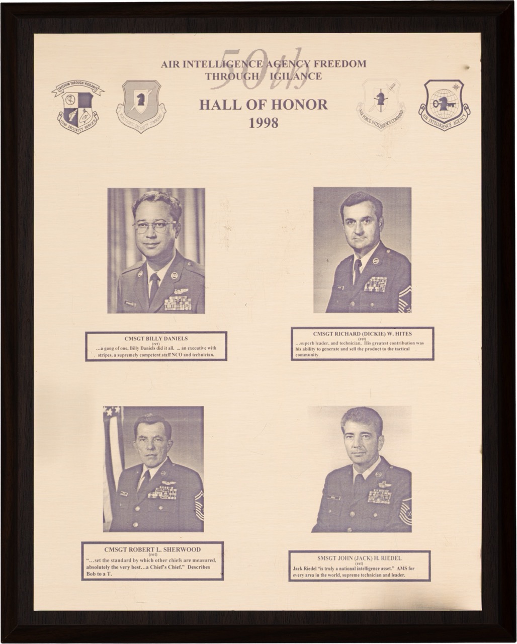 The Hall of Honor was created in 1983. It honors individuals who served with great distinction and contributed immeasurably to successful mission accomplishment. The Hall of Honor preserves the legacy of those who have gone before, highlights their deeds, and honors their contributions to the nation.
